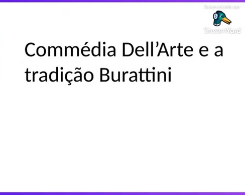 E aí tem alguns registros de grupos desse período, dessa Europa ainda agrícola, já como grupos de teatro de bonecos mesmo, não eram atores, eram companhias que trabalhavam na tradição dos burrattos, que vai criar então a Tradição Burattini. E aí vai ter um personagem em especial que vai ser o principal da Commédia Dell'arte que vai entrar, que é o Pulcinella ou o Polichinelo. E aí o Pulcinellla é um personagem que faz parte de uma linhagem de personagens que eles tem caráter duvidoso, eles tem defeitos às vezes físicos, propositadamente. Ele tem a barriga grande, ele tem o nariz grande, ele tem essas coisas que também tem uma questão de caráter. E aí a gente vai falar das rotas do Polichinelo pelo mundo. Então a gente vai ter o Bruno Leone, ele é um burattinaio que está trazendo atualmente, atualizando a Tradição Burattini, isso na Itália. Ele está retomando isso com a Commédia Dell'arte.